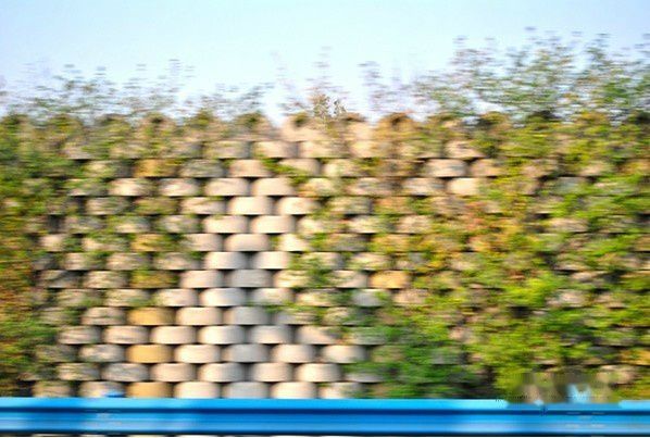 车子飞快的驶过一堵满是小花的墙。很有文艺气息。