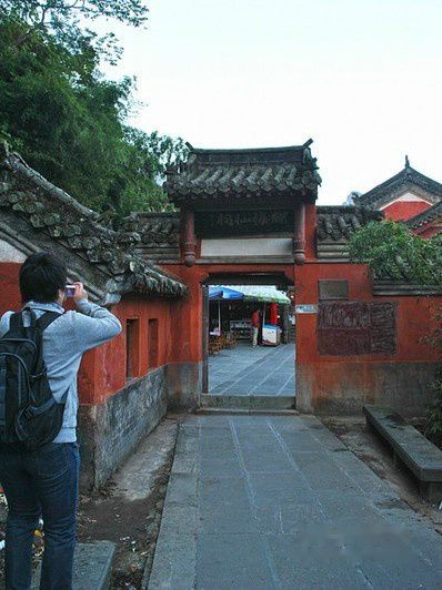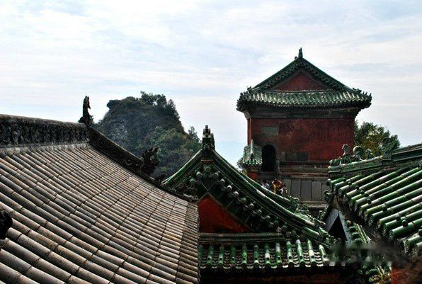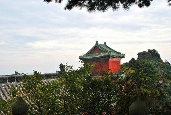 终于爬到了金顶下面的太和宫了,胜利在望啊。这是太和宫一景,角楼是不是看着有点眼熟呢,没错,风格跟故宫的房顶很像,红墙琉璃瓦,建于明代。