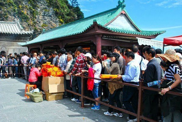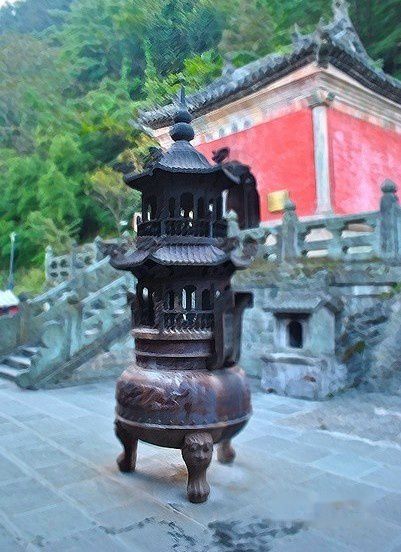 古铜殿的平台,烧香神马的可以在此处烧了。由于是十一,很搞笑的事情就是游客客来的香不会让你自已去插上去烧的,都是交给道人然后给你远远的扔进那个灰色的小房子里直接烧了,这个有点差差人意了,十一烧香的人就有够杯具了。。