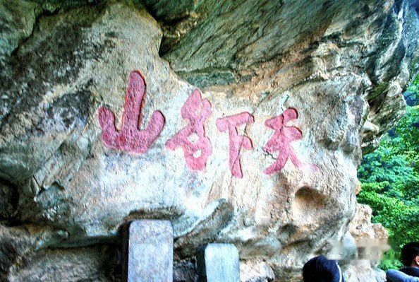 途径黄龙洞附近的一景,天下名山,石壁上似乎还有很多不知名的碑文,已是斑驳不清了。