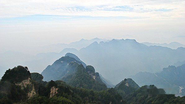 站在一天门处的一个平台望下看,群山叠翠,云雾缭绕,真有种仙山的感觉。