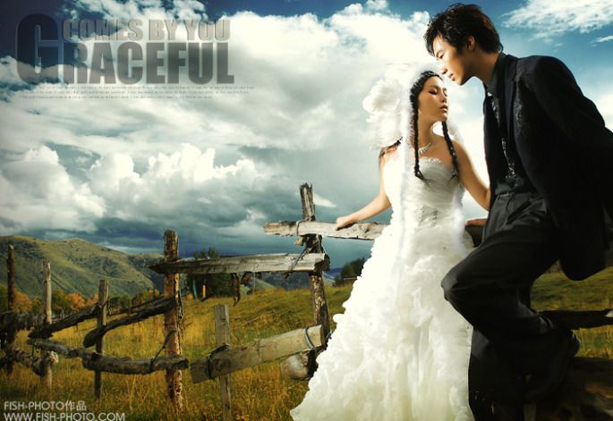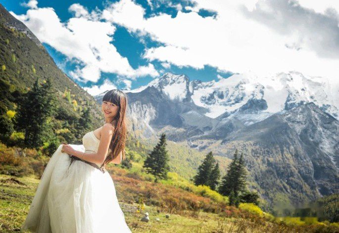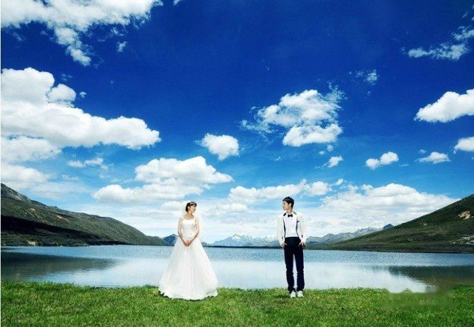 婚纱:主要拍摄高原的宽阔、蓝天、白云,可体现的唯美和大气,齐地婚纱活泼、可爱