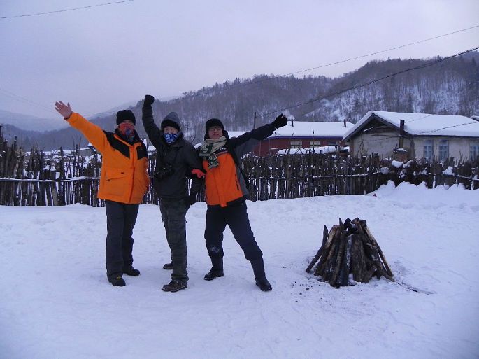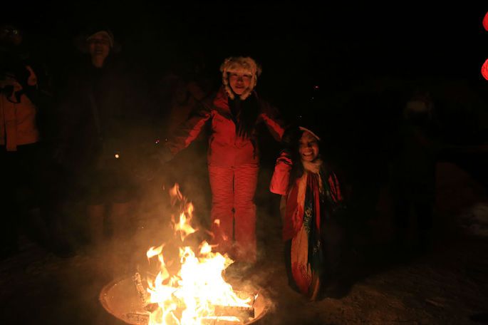 火堆旁的我们多么快乐、不管你有什么烦恼都会一扫而光...跳一跳就好热好热,完全忘记我们在零二十多度大东北...