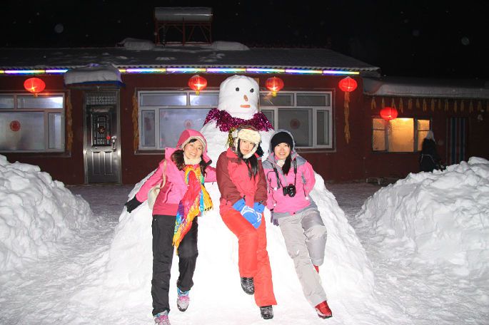 客栈门口都有比人高的大雪人、造型很酷哟~