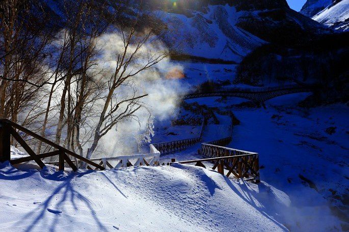 冬日的镜泊湖带来一种震撼感、上面几米长的冰吊子、下面湖水热气腾腾,各种幻想美人出浴!哀家要沐浴了!小什么子,还不快点退下?