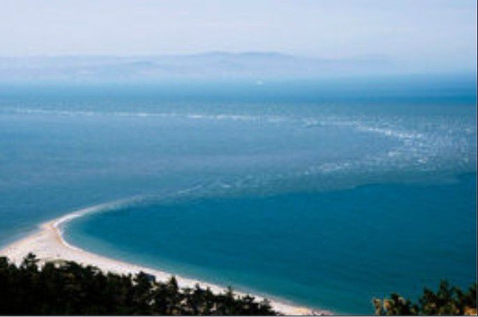 内陆不错的另一个地方可能就是南边的林海了吧,黄渤海两海之交融,虽然黄渤分明,却非一条直线,而且颜色深浅不同,一边是深蓝,一边是淡黄,形成一幅"太极"奇观。最奇的是,这里常年波涌流急,别处波平如镜,此处却激流似剑,远看如龙尾戏水作浪,又似沙鸥翩翩起舞…大自然真的很神奇!