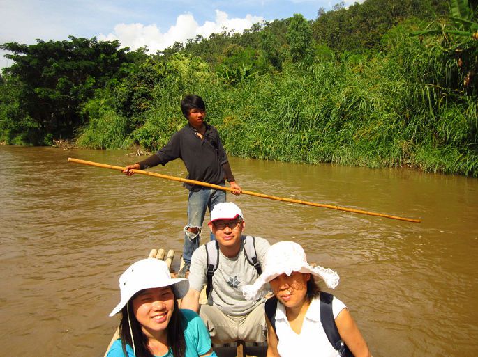 随后几天的住宿确定了也就放心了. 闲逛至中心的RACHADAMNOEN RD上塔佩门附近, 在一家旅行社定了明天到清迈郊外参观大象和漂流的一日游配套行程, 三人总费用2200TB.