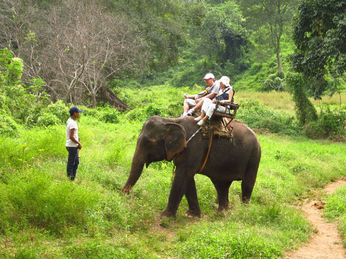 其实骑大象远没有看的和想象的那么舒服. 大象走起来摇晃的很厉害. 坐在上面被颠簸的头晕目眩, 尤其刚上去时这种感觉很强烈.