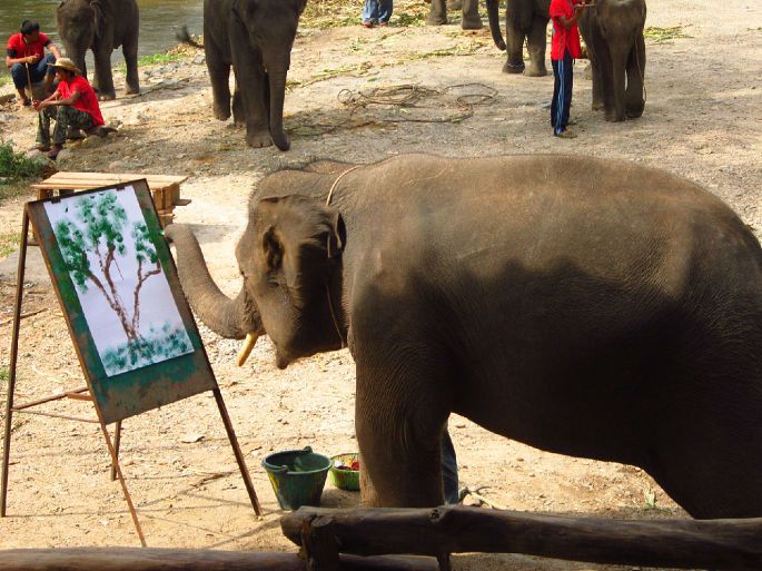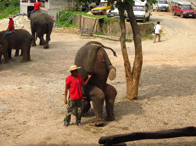 大象训练表演地点在一条河边, 与竹排漂流一起穿插进行, 这样一来虽然游客不少, 还不用太长时间排队.
