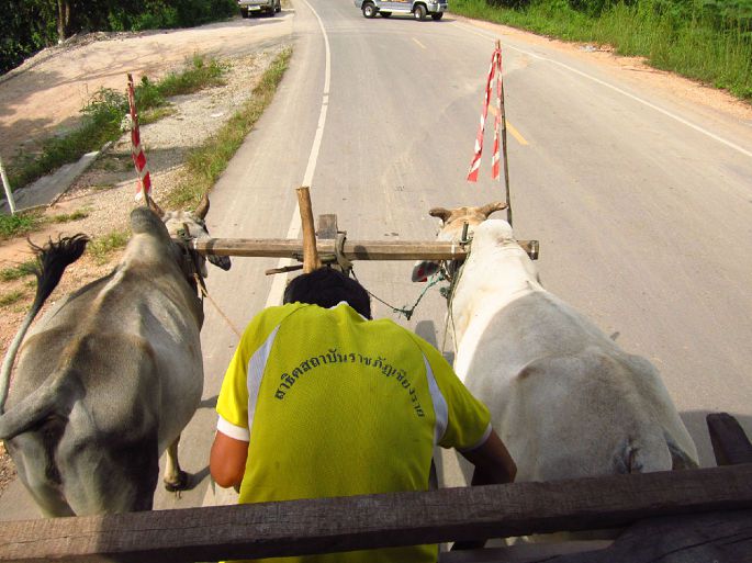 午饭后的另一个项目是乘坐老牛拉的原始的木轮车