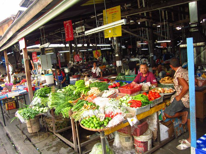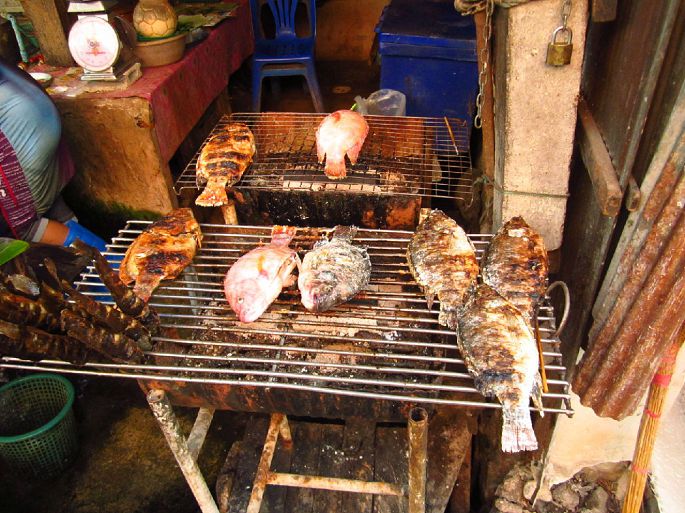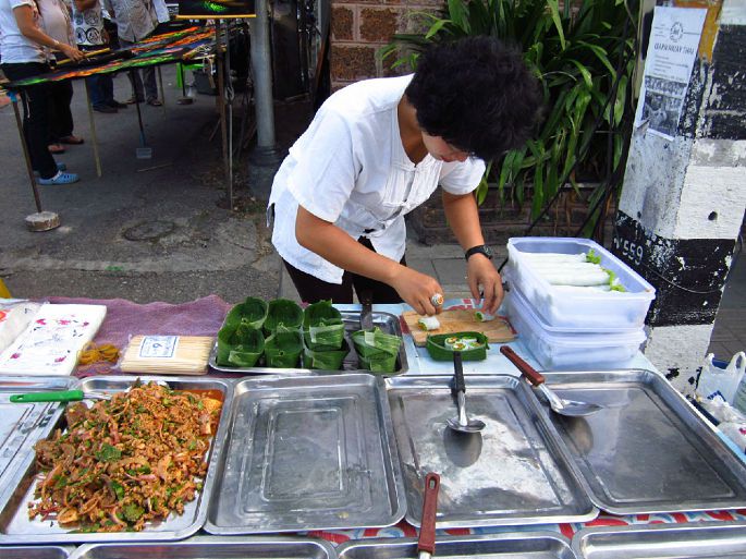 到三王雕像附近时已11点了, 正好经过一个大排档饭馆, 于是吃午饭也正好休息一下. 三人共花220TB, 好一顿简单又便宜的午餐.