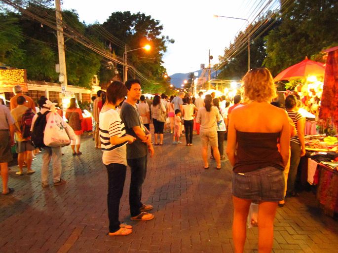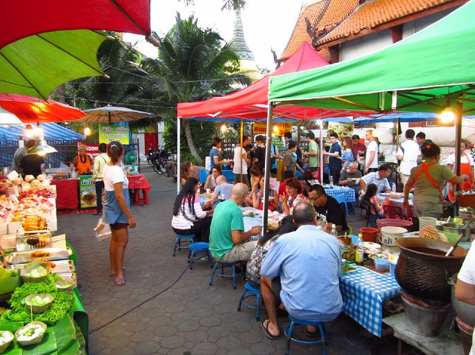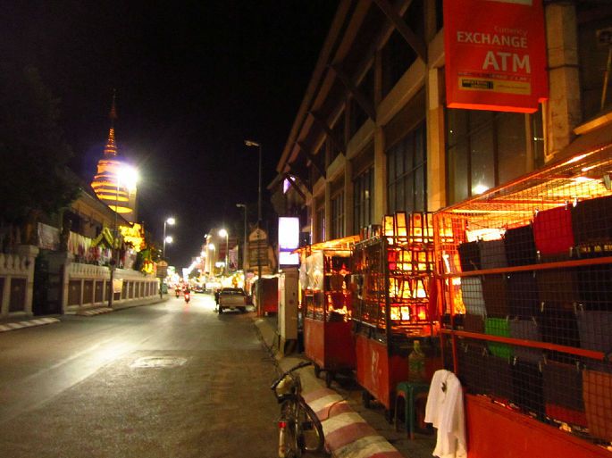Ratchadamnoen Rd靠近塔佩门这一段可以说是清迈的中心, 也是游客出没最多的地方, 著名的清迈周末市场就是在这里.