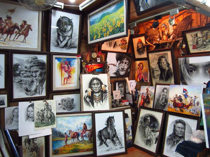 在路旁一座大厦的地下层有一组规模很大的画廊, 即使不是夜市开放的时间都可前往游览参观.