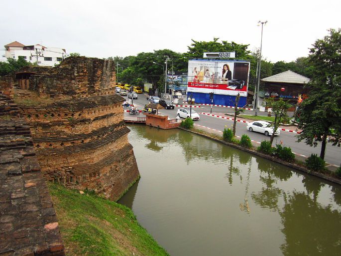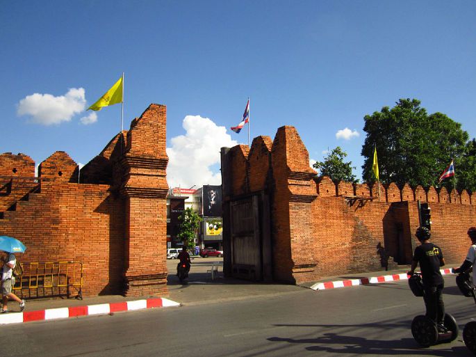 建于1296年的清迈古城,呈四方形,每边城界长约1.5公里,四边均由城墙和护城河包围着,现时城墙和护城河均保存良好。为防止古城景观受到破坏,清迈市政府于1990年禁止市区建筑高楼,并为护城河加建滤水设施. 东门塔佩门附近是清迈最繁华的地方, 也是游客必到之处.
