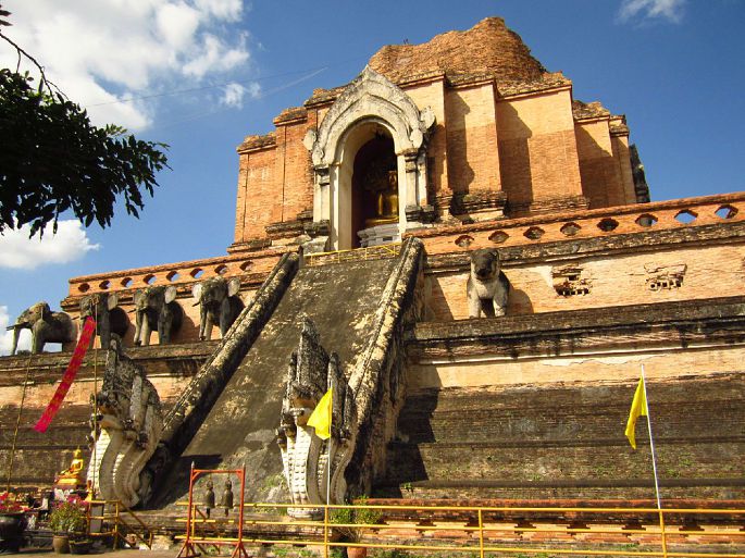柴迪隆寺位于清迈古城的中央,在泰文里是“大塔寺”的意思,又译作隆圣骨寺。这座纳兰泰王朝建筑形式的大佛塔建于公元1441年原高90米,于1447年于此寺举行著名的第8届世界佛教会议。但经历1545年大地震和16世纪泰缅战争,现时寺庙略见倾颇,高度仅剩60米高,原存于此塔东面神龛的玉佛,后移至曼谷玉佛寺。
