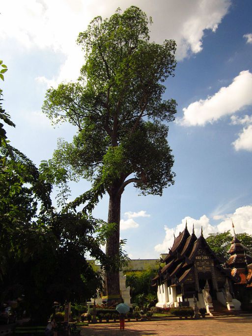清迈柴迪隆寺Wat Chediluang与大佛塔对应的参天大树