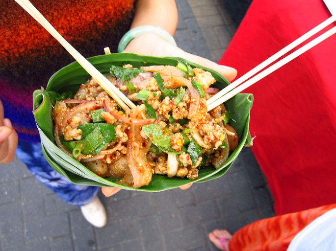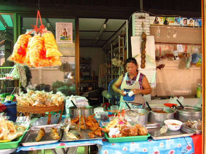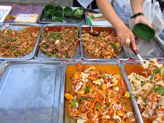 清迈周末市场丰富多彩的美食小吃令人垂涎欲滴