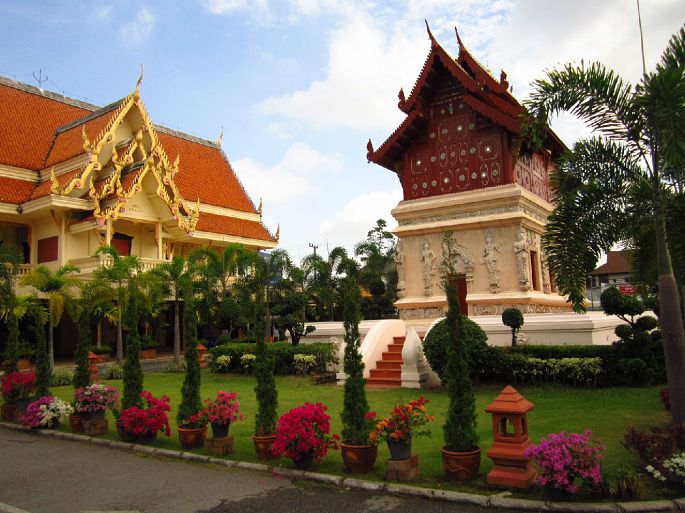 从松达寺搭嘟嘟车去帕辛寺Wat Phra Singh, 车资50TB.