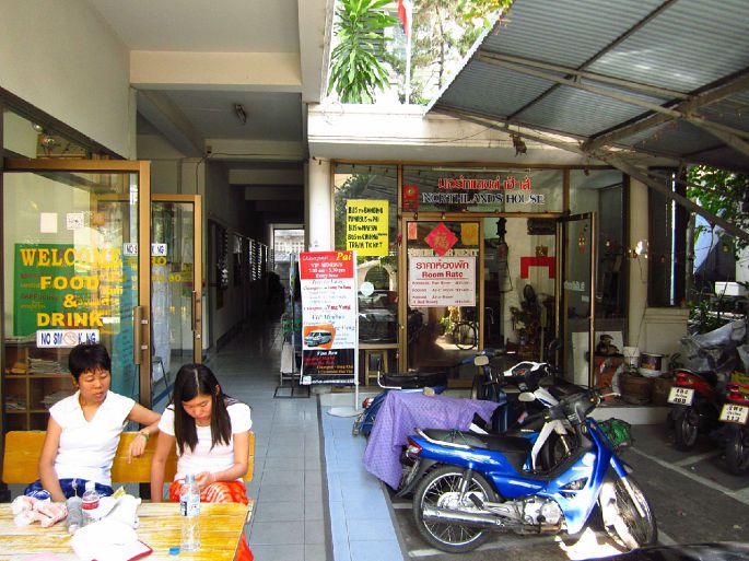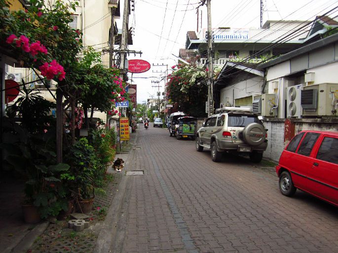放下行李稍事休息, 就按照LP上的信息在附近找以后几天的旅馆住处. 连问几家仍是客满, 最后找到位于古城东北处的Northland Guest House. 三人房宽敞明亮干净, 600TB/晚, 虽然位置稍偏点, 但附近吃饭购物都很方便, 步行到中心处也就需要十来分钟, 老板还说以后几天可以一直住下去. 于是预交了一晚的钱明天就搬过来.
