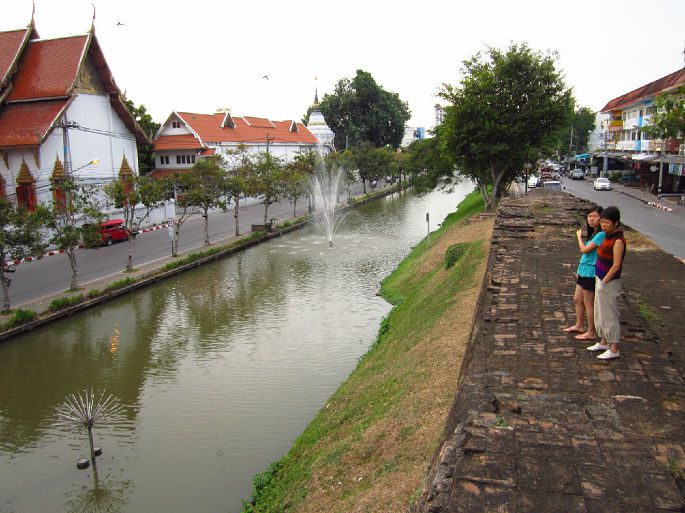 今天是来清迈的第七天了, 傍晚将要乘火车离开这里前往曼谷. 早上一早7点起床, 出去看看在我们旅馆附近, 这些日子进进出出经过却还没来的及细细观赏的古城护城河和残存的古城墙.