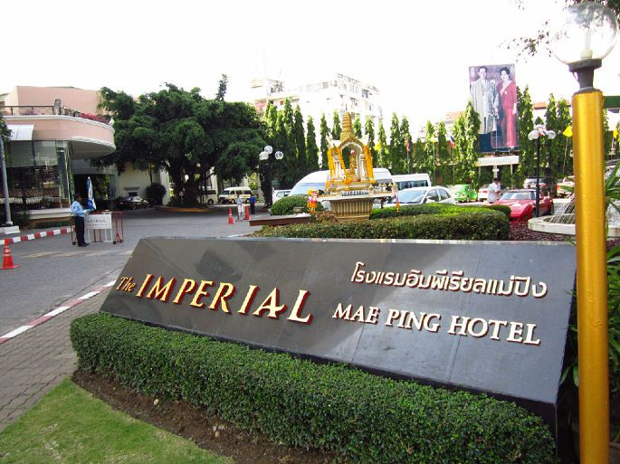 上午在房间里一边看电视一边慢慢收拾行李. 11:45(赶在案2:00之前)下去check-out. 之后把行李寄存在客栈里, 花50TB搭嘟嘟车去邓丽君来清迈必住并在此辞世的大帝湄滨酒店The Imperial Mae Ping Hotel.