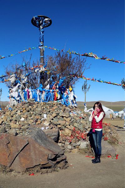 敖包的许愿方法是:捡一块石头,然后顺时针绕三圈,回到原地的时候把石头扔向天空,许一个愿望。