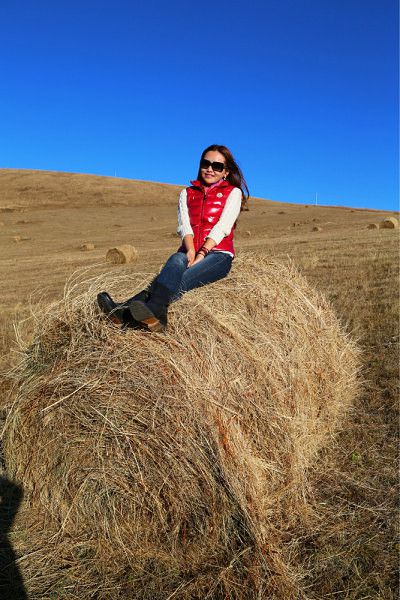 上山坡的时候看到了大草剁,这个是为了存粮用的,夏天过去之后把草给割了,用机器给裹成草垛,为了给牛羊冬天的时候吃。