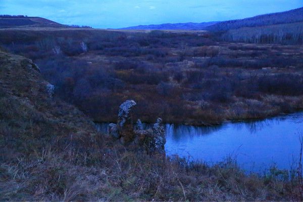 去的时候太晚了,草原杰子说如果觉得好,就明天天亮的时候再来一趟,我们去看了一下觉得没有什么意思,第二天就没有再过来,晚上就拍了个照片,一个长的像老鹰嘴的石头