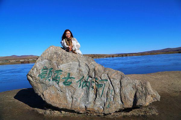 我们到了有额尔古纳河的牌子这边照了会相,夏天的时候这边有游船,在界河上游船也是一种享受。