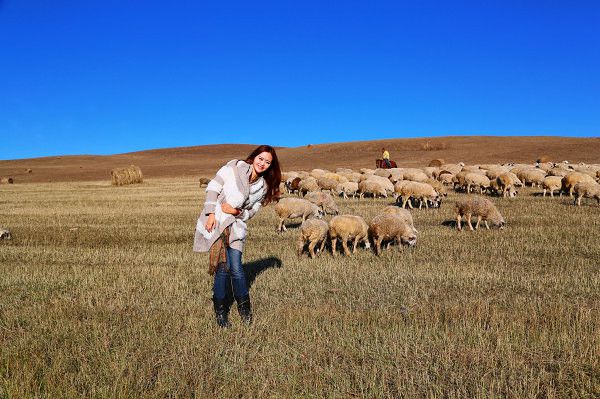 然后我们开始往满洲里开,路上遇到的放羊的羊群,必须要去亲密接触一下,不过小羊都超级胆小的。、