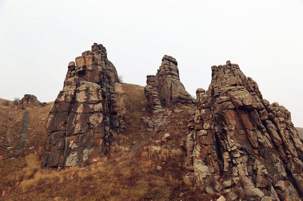 玫瑰峰是一处由10余座石峰组成的山石景区,因石峰大部分呈红褐色,因此得名“玫瑰峰”,也叫“红石砬子”。因长期地壳抬升,经强烈的河流切割侵蚀和寒冻风化作用,形成峰岭嵯峨、险谷纵横的地貌景观,十几座陡峭的山峰参差错落,造型各异,巍峨壮观。山下古道沧桑,据说北方历史上有名的“诺门罕”战争发生时,这里曾是一条重要的军事通道