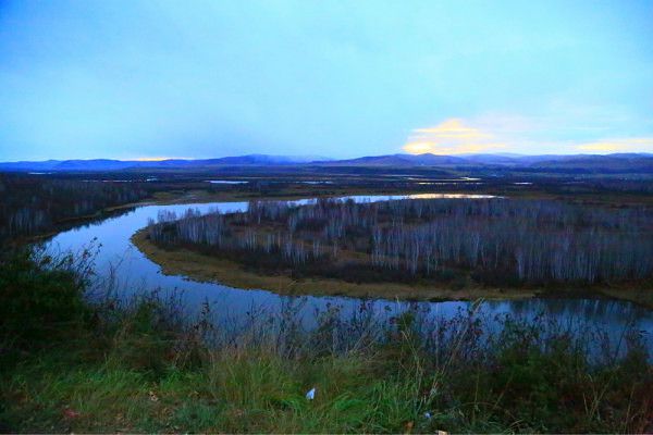 山包上登高远眺,湿地、额尔古纳河尽收眼帘,弯弯曲曲,盘盘缠缠,九曲十八弯,配上周边的白桦树、小松树像用彩笔染过一样,组在一起那种美是震撼!美丽、绝顶!
