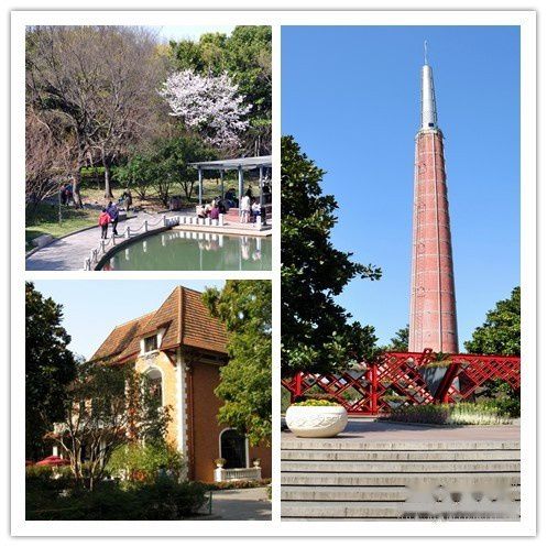 徐家汇公园:原大中华橡胶厂的烟囱,百代唱片公司小红楼,公园景色