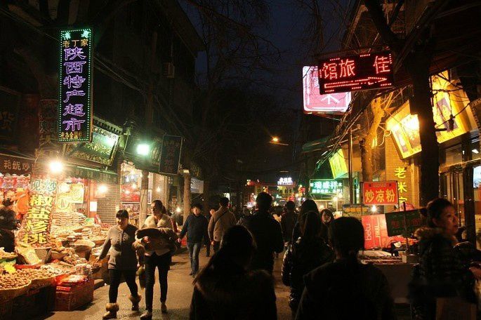 逛回民一条街,品当地小吃,38元要了1碗老米家的羊肉泡馍,免强能够下咽,但物不所值。来了碗biangbiang面,实在难吃,只好浪费了。味口不对,不敢再冒然品尝其他花花绿绿的所谓美食,只好闲步街头,为回民一条街添点人气而已。