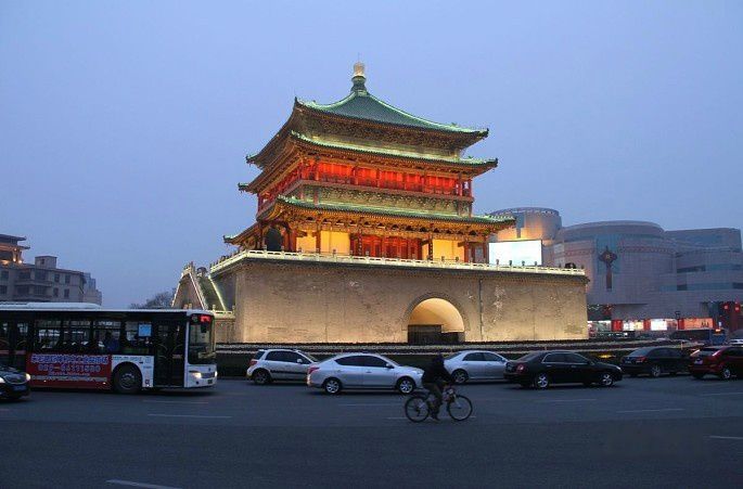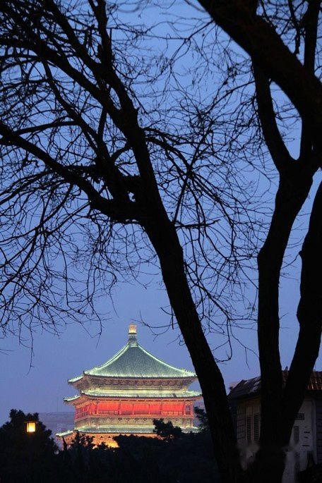 后乘公交到钟楼和鼓楼,远观霓彩灯下钟鼓楼的华美。