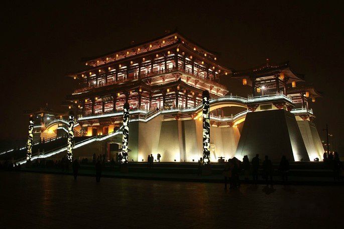 午休后,乘501路公交在大唐芙蓉园北门下车,因网上订票要求在3点半 到南门验票统一进园,所以,又围着园墙外绕东门至南门,走了个半死才到。3点50分统一进入大唐芙蓉园,园内水面开阔,仿唐建筑众多,因属淡季,很多展演暂停,园内万物萧条,但迎春灯会的大型灯组却为园区增添了喜庆气氛和缤纷色彩,游园一会,来到《梦回大唐》歌舞厅,5点20分演出正式开始,历时70分钟。《梦回大唐》歌舞比较精彩,但我以为表演、舞美和创意都还有较大的提升空间。看完演出后,回园继续观灯游园,7点半的水幕电影效果很差,不值一看。晚上8点出园打的回酒店。