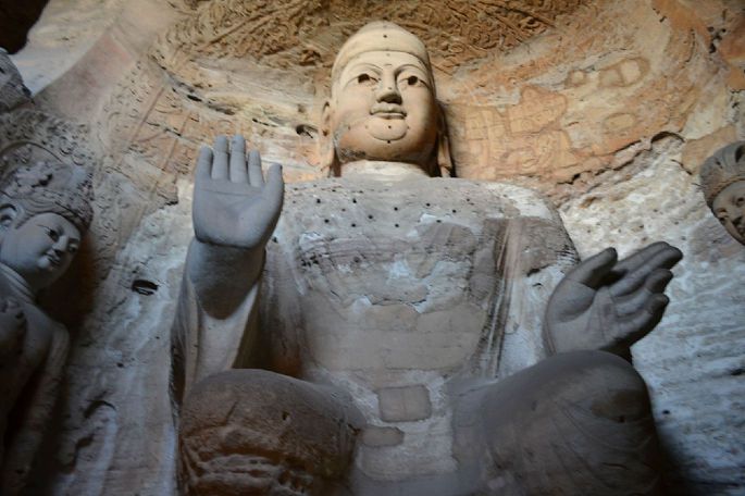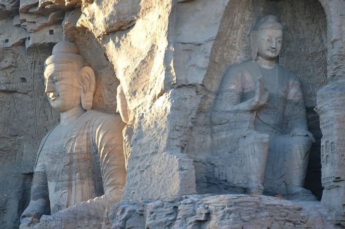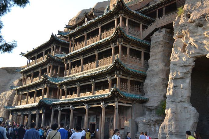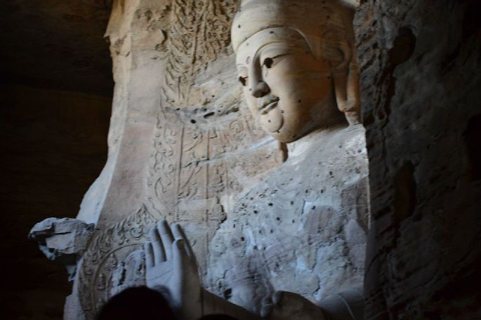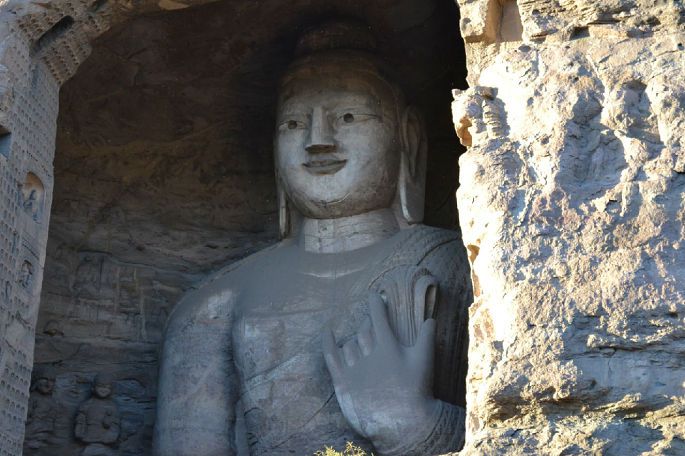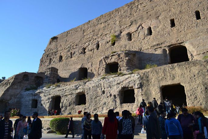 走进云冈石窟:云冈石窟位于塞外古都、煤海之乡的大同市西郊约16公里处的武周山北崖,武州川的北岸,因此高处名云冈,故取名云冈石窟。石窟依山开凿,东西绵延1000米,现存主要洞窟45个,窟龛252个,石雕造像51000余躯,是我国规模最大的古代石窟群之一(另两个是龙门石窟和敦煌莫高窟)。好象布满蜂洞的超级蜂巢,非常壮观。岁月风蚀造成的斑驳使它更显得苍古。这处宏伟的艺术工程基本上都是北魏的遗物,距今已有1500多年的历史。