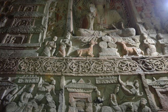 呈现/景象一如这座城市的名字/一尊尊像、一窟窟佛,还有飘逸的飞天/迷惑里,天国与尘世的忖度,相差多远/走进你,记忆变得鲜明/你就是历史的刻刀,辉