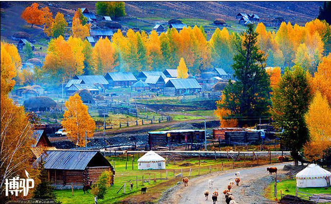 喀纳斯位于新疆北部的阿尔泰山中段,是亚洲唯一具有瑞士风光特色的自然景观区,因此有“中国小瑞士”之称。喀纳斯仍保持着原始的自然风光与人文特色,当地图瓦人的村落非常美,犹如充满宁静祥和的世外桃源一般。