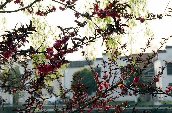 村边的桃花夹道