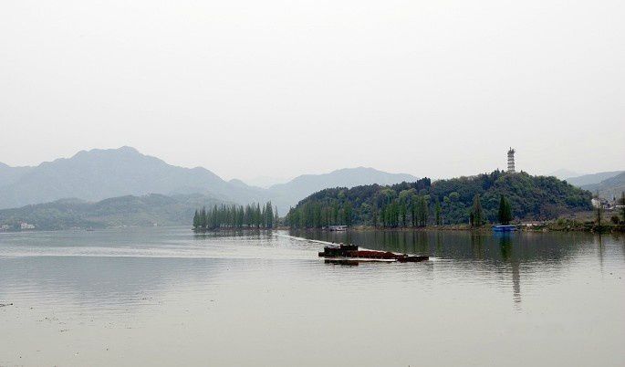 午餐后,我们直奔三都镇三江口村,这里是三江汇流的地方。三江口村位于建德市三都镇西面,地处新安江、兰江和富春江汇合处,因而得名。实际上我们是奔建德市梅城镇去的,那里才是三江汇流的地方。由于一路所见宣传标语和路牌都指向“三江口渔村”,这样我们就来到了三江口渔村。这里看三江汇流虽然有点远,但也是一个美丽的地方。从2012年起,三江口村正式启动创建“风情小镇”工作,充分利用山水生态资源,深入挖掘“九姓渔民”民俗文化,打造了独具特色的“三都渔家”风情。