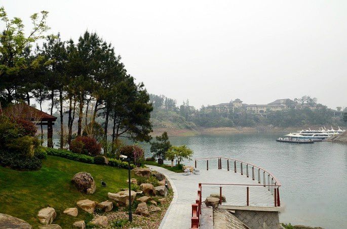 穿过紫荆长廊就到了码头边,可以遥看三江口