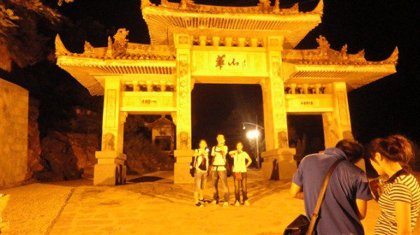 于是我们仍旧爬啊爬,夜晚深蓝的天空满目繁星点缀,洒进华山的山坳里,明亮俏皮的,与山上星星点点的灯火遥相辉映,在暗色的华山铺景里不停的给着我希望,向上向上,到山顶问候星星问候太阳,是不是还有“手可摘星辰”的那个样子,好吧,又是我幻想了,可惜的是我的小绿在黑暗中拍不了这么美的景色,真是遗憾。所以,我是不是应该立志买个单反,下次晚上7点钟去重爬华山呢!(为什么是7点,请看后文)
