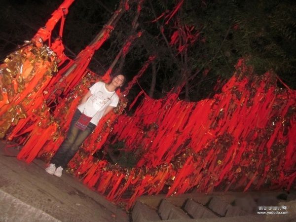 等当苦力的师兄吃完泡面,已经是11点半了(还是10点半?),赶紧上山。走了好长一段路,才到山门,正好买门票排了很长队,休息休息,学生票60.买好票,绑好红带子,照张相,出发。