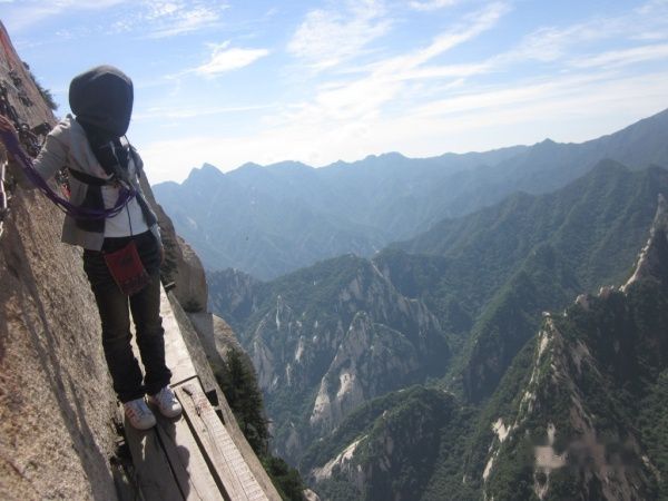 仍旧交30块,卸装备,戴保险锁,fly和师兄都不想去,囧,我十分想去,无论如何我还是会去。有恐高症师兄担心我会跳崖(乱说的- -),还是陪我走一遭,他可以此生无憾了,这意思就是fly没去真是遗憾。长空栈道很容易爬,就一块小小的板长在悬崖上,我没有恐高症,对此表示毫无压力,而且视野很好,很高兴,然后看有恐高症的师兄十分严肃的表情,灰常乐。