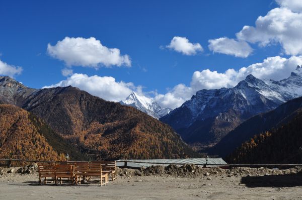 香巴拉外的停车场。也没什么客人。我就在门槛坐着望着远处的雪山发呆。很愉快的一个下午,即使什么也不做。