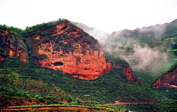 赤壁幽谷在冶力关镇西五公里处。这是造物主在冶力关风景区一片撩人的翠绿中别出心裁的禇色世界,特意在四周或浓或淡的遮覆中突生出裸露山岩,别一洞天。赤如其装,壁似其胴,但他不是娴淑羞涩的少女,却是与神佛鬼怪,狮虎蟒蛇相连接的泼壁野谷。