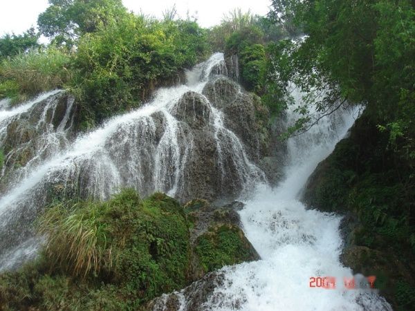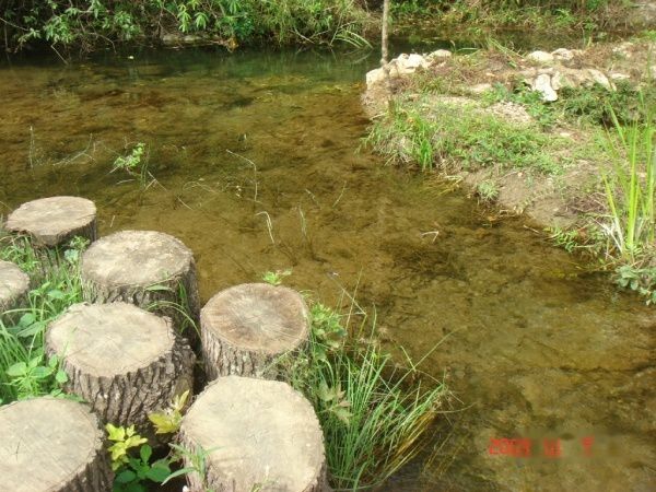 走不久就到了当地的一个著名的景点:水上森林。大大小小的灌木均匀地分布在一条湍急的河流上,让人惊奇的是这些灌木的根长年被这些河水冲刷着,而枝干却异常的茂盛,并散发着幽幽的绿色,远远地看上去有就像一幅中国水墨画。穿梭其中,躲闪着高高低低的枝叶,把枝干当作拐杖,偶尔会摔上一跤,弄得浑身透湿,而心里却是轻松快乐的。我们都光着脚,拿着鞋,也沾沾这里的地气,水不大,缓缓从脚下流过,感觉很舒服