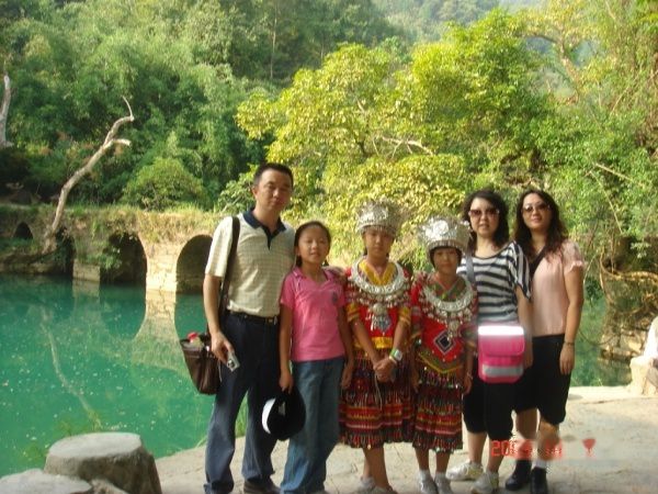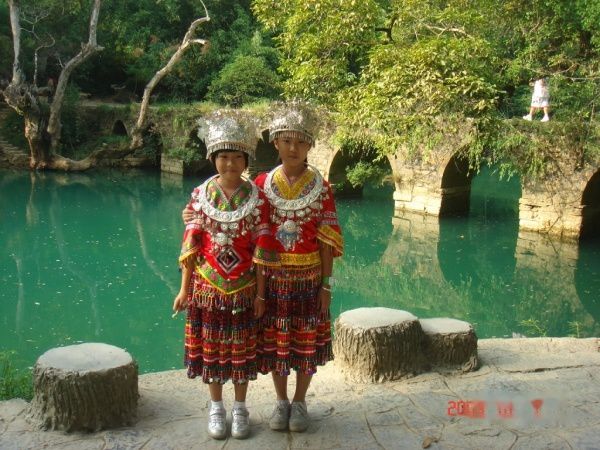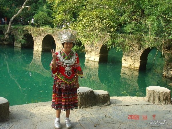 女孩后边的就是有着200多年历史的小七孔桥了!