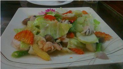 推荐它家的海鲜蔬菜,100P,里面有卷心菜、小玉米、胡萝卜、辣椒、鱿鱼。很爽口,性价比也高。